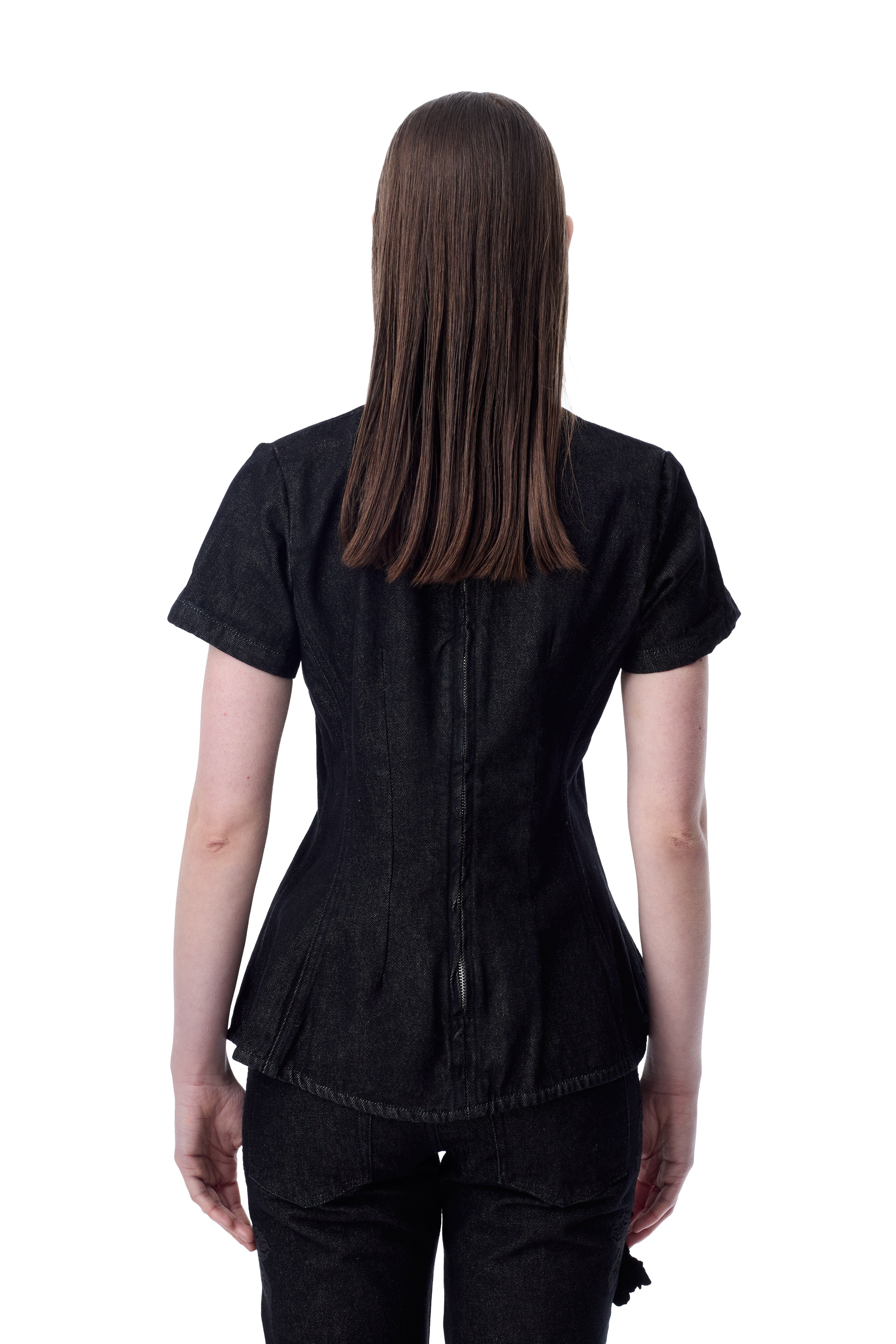BLACK DENIM CAP SLEEVE PEPLUM TOP