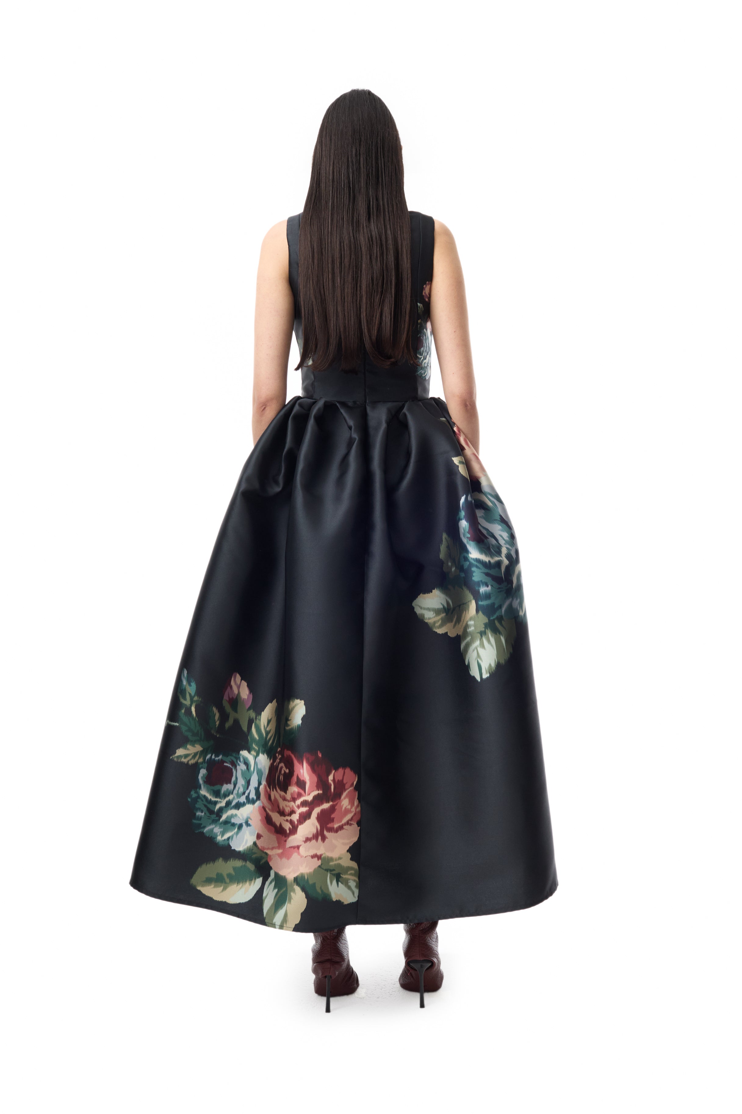 BLACK FLOWER PRINTED PRINCESS DRESS