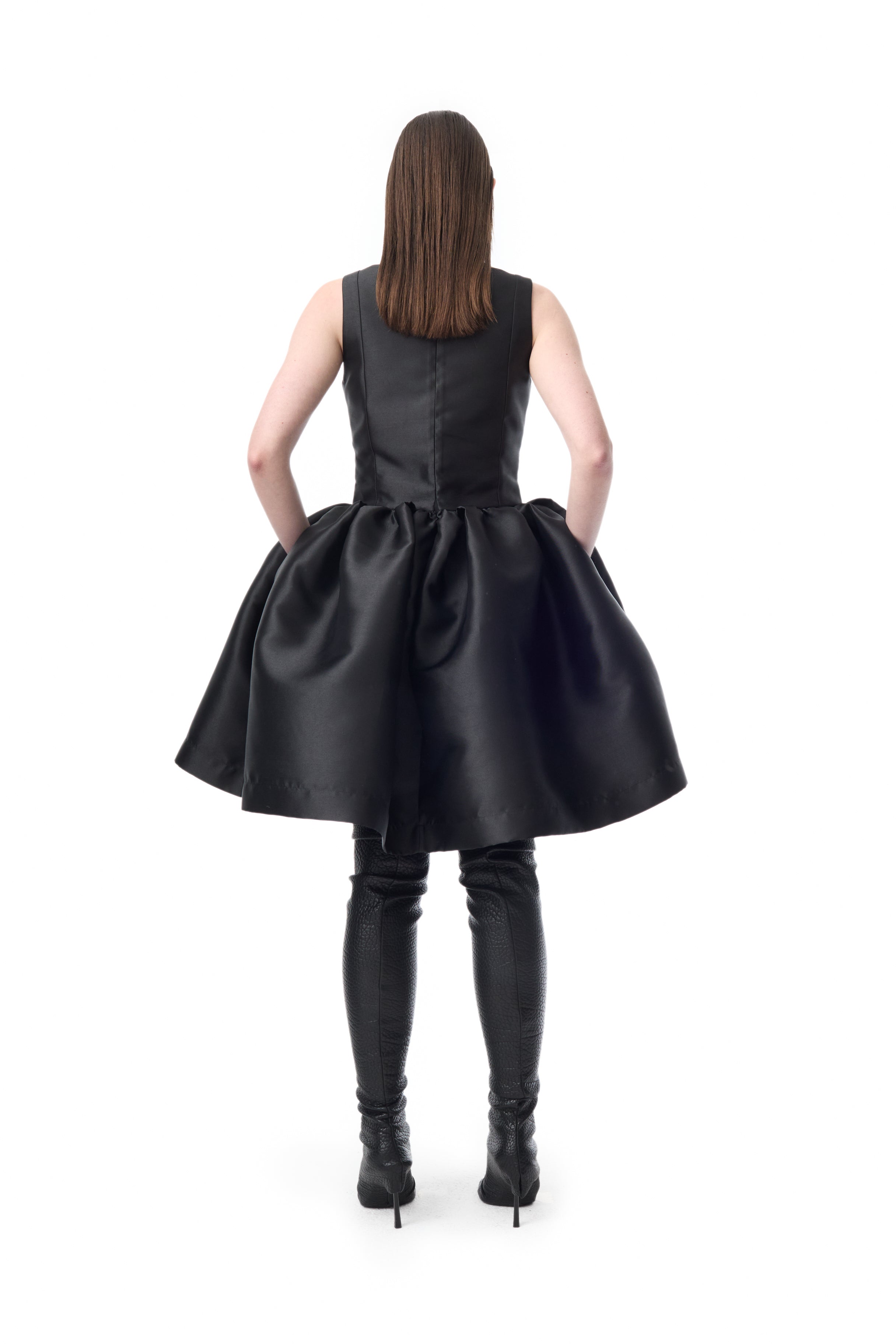 BLACK SHORT PUFF DRESS WITH EMBELLISHMENT