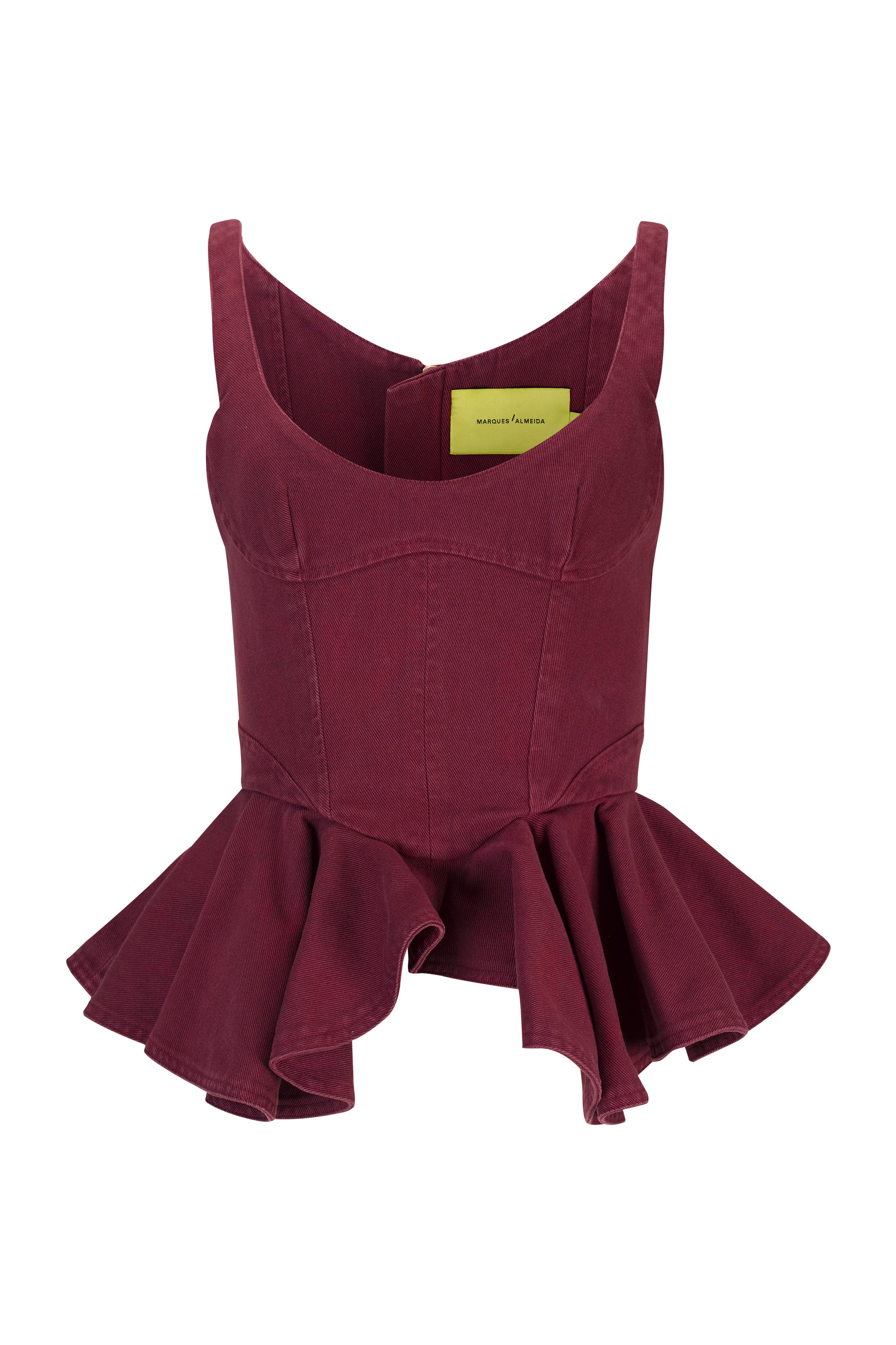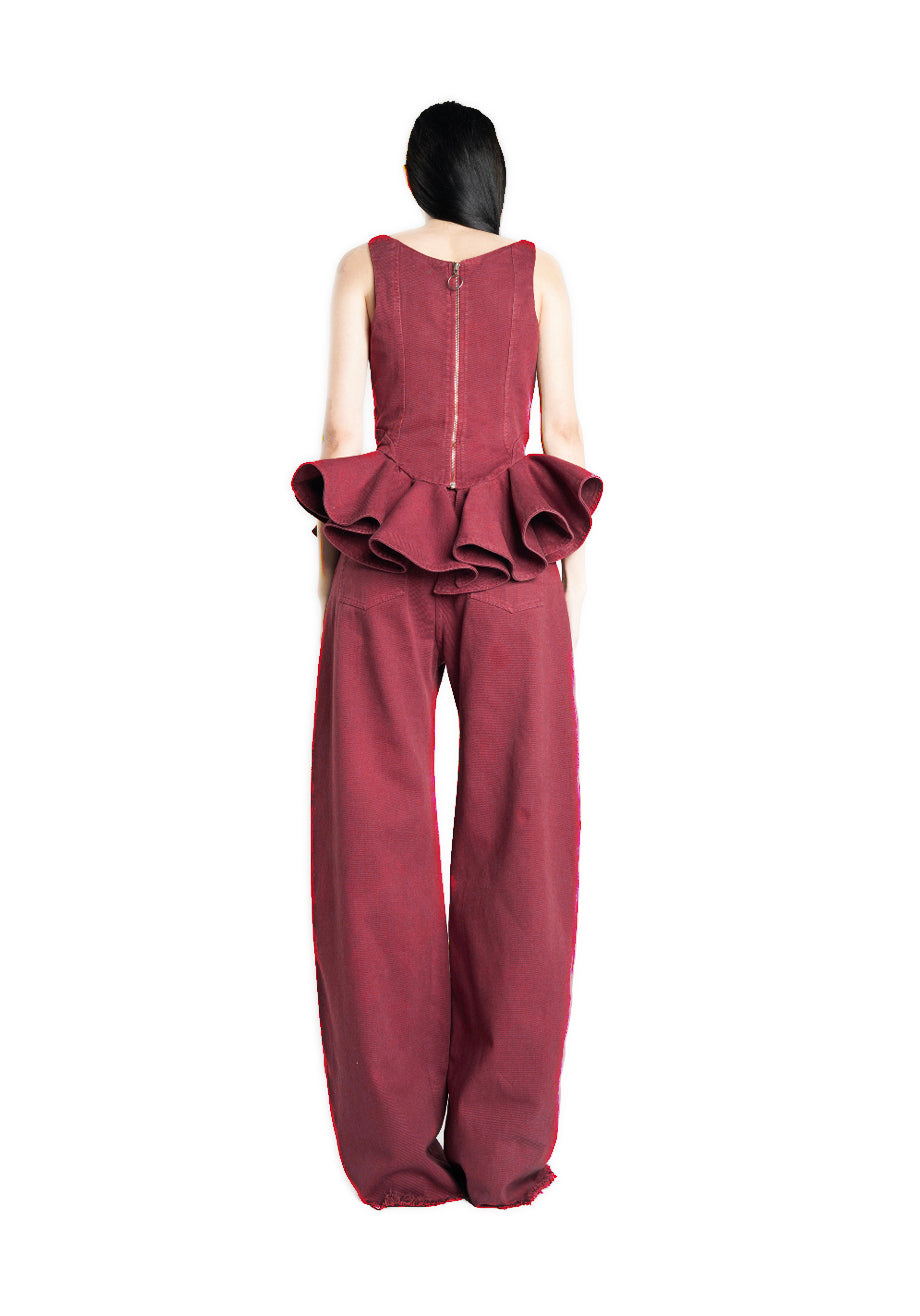 BURGUNDY DRILL CORSET WITH PEPLUM