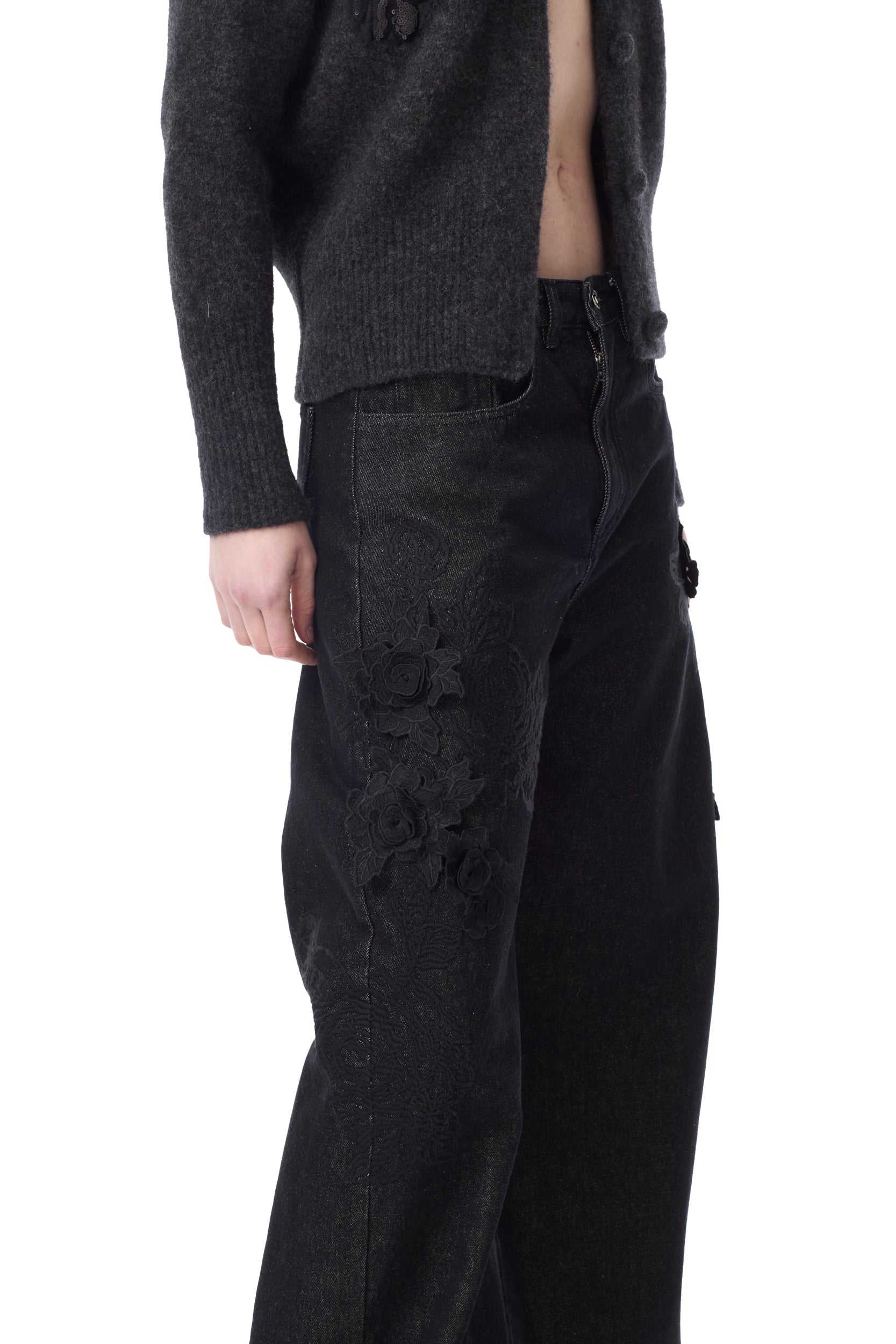 EMBROIDERED BLACK DENIM BOYFRIEND TROUSERS