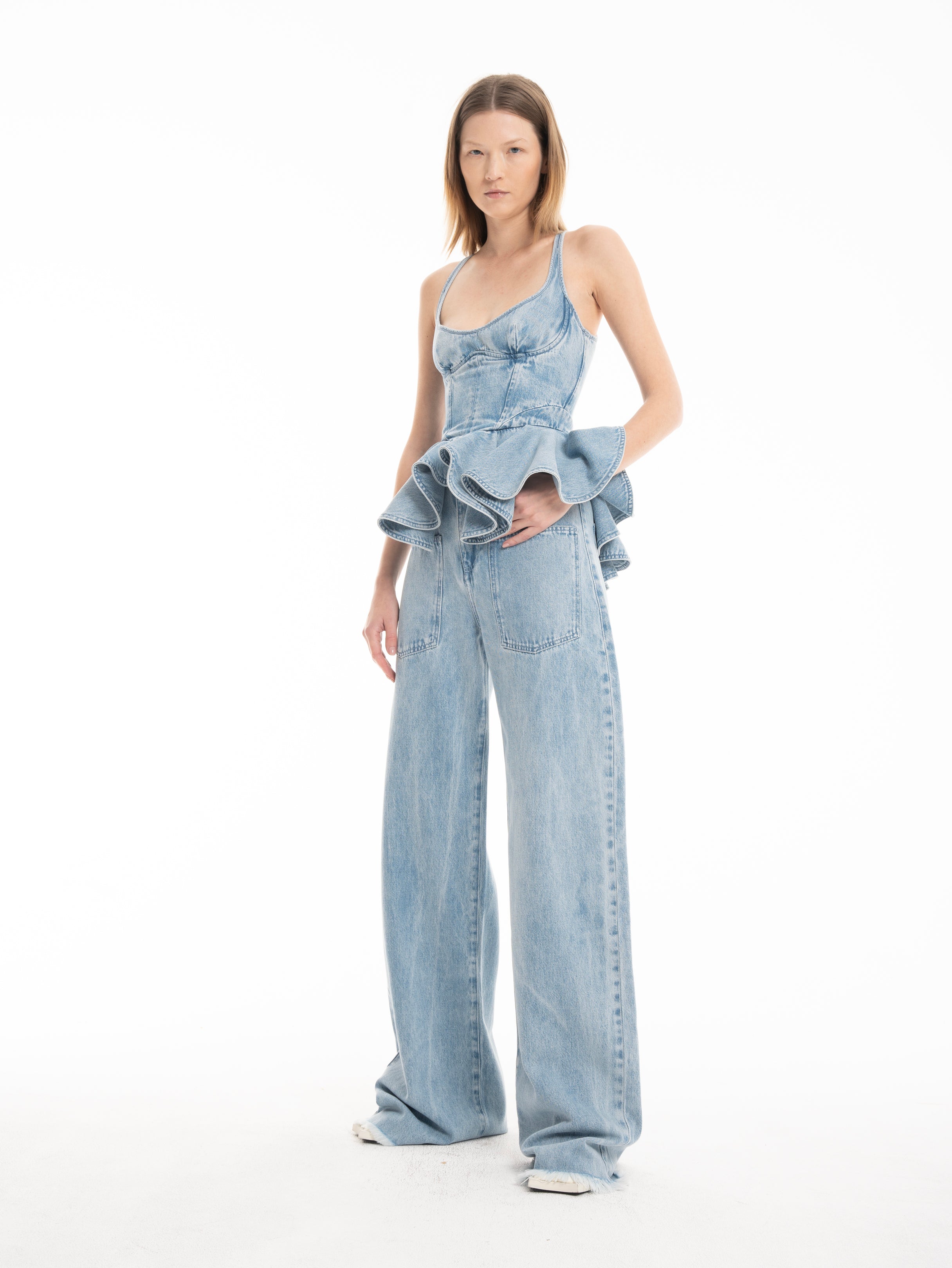 LIGHT BLUE DENIM CORSET WITH PEPLUM