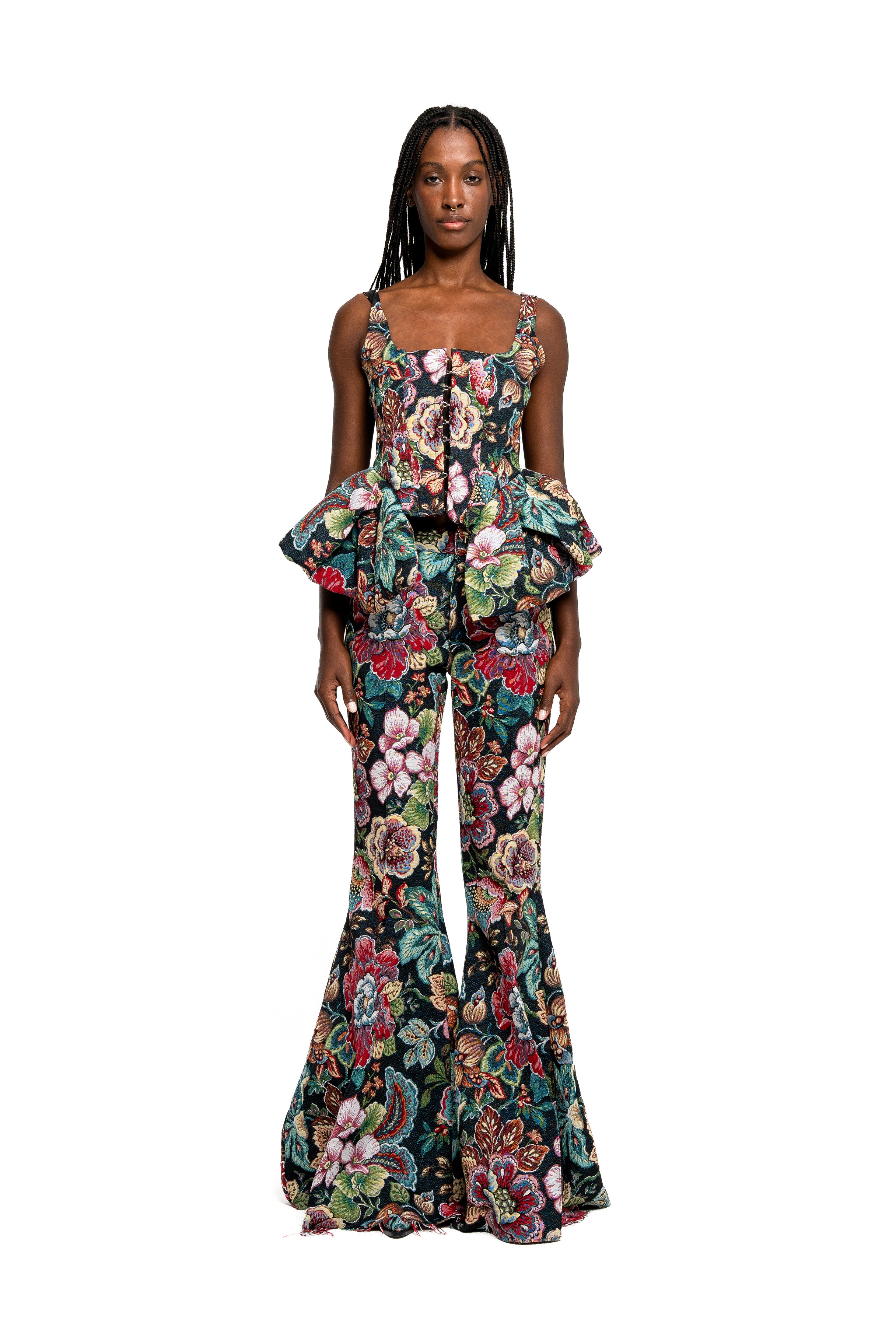 BLACK FLORAL BROCADE BOYFRIEND TROUSERS