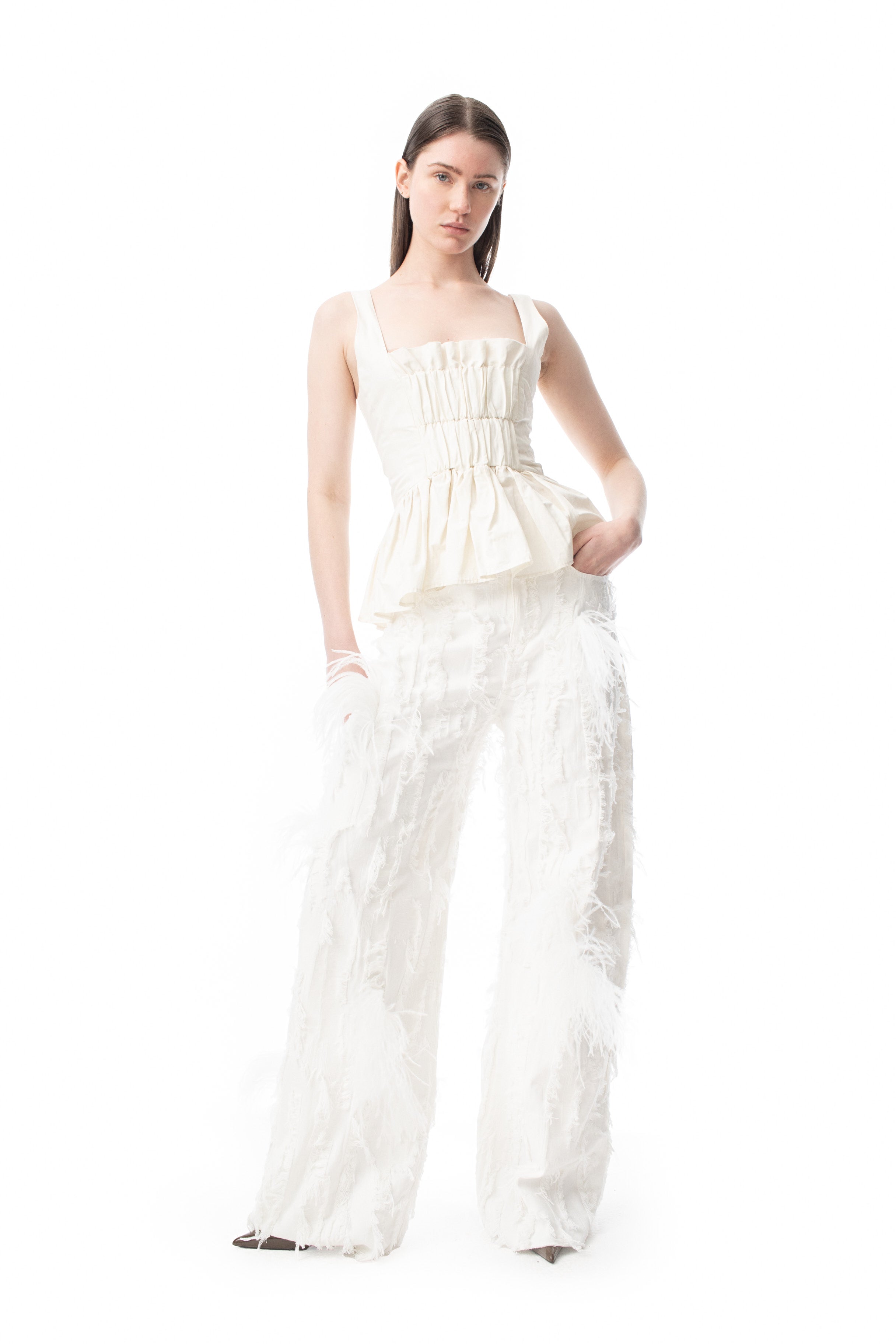 WHITE SHREDDED DENIM BOYFRIEND TROUSERS